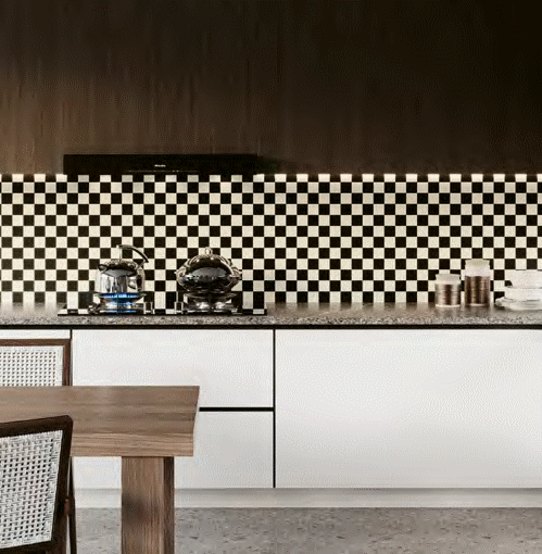 Pourquoi ne pas opter pour une crédence de cuisine en petit format, mais élégamment en noir et blanc?